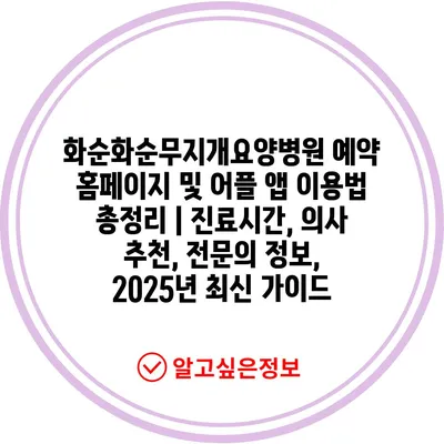 화순화순무지개요양병원 예약 홈페이지 및 어플 앱 이용법 총정리 | 진료시간, 의사 추천, 전연락 정보, 2025년 최신 설명서 에 대해 자주 묻는 질문 TOP 5