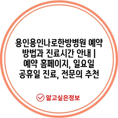 ✅ 용인용인나로한방병원의 예약 방법과 진료시간을 자세히 알아보세요.