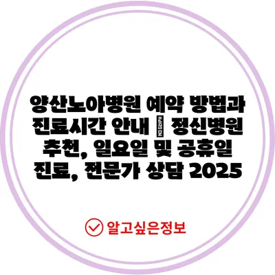 양산노아병원 예약 방법과 진료시간 공지 | 정신병원 추천, 일요일 및 공휴일 진료, 전문가 상담 2025