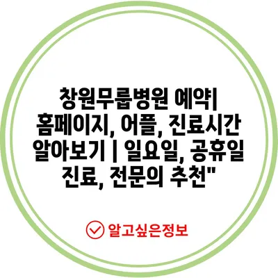 창원무룹병원 예약| 홈페이지, 어플, 진료시간 알아보기 | 일요일, 공휴일 진료, 전문의 추천”