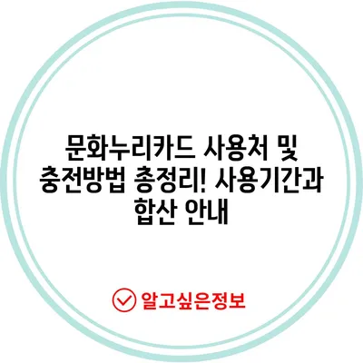 💡 문화누리카드 사용처 및 충전 방법을 자세히 알아보세요! 💡