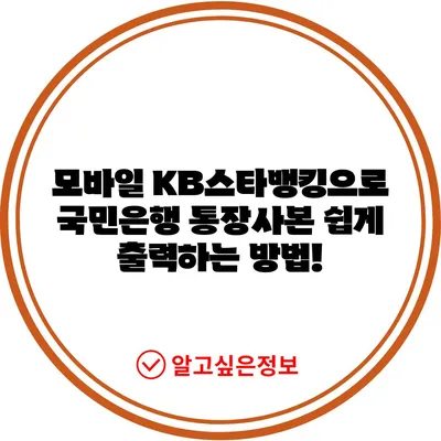 국민은행 통장사본 출력 방법을 모바일 KB스타뱅킹에서 쉽게 하는 법에 대한 상세 정리. 필요한 모든 정보가 포함되어 있습니다.