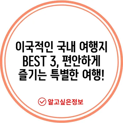 이국적인 국내 여행지 BEST 3를 소개합니다. 이제 편하게 국내에서 기분 내고 특별한 여행을 즐겨보세요.