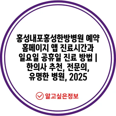 ✅ 홍성내포홍성한방병원의 진료시간과 예약 방법을 알아보세요!