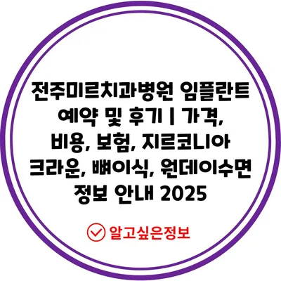 전주미르치과병원 임플란트 예약 및 후기 | 가격, 비용, 보험, 지르코니아 크라운, 뼈이식, 원데이수면 정보 공지 2025
