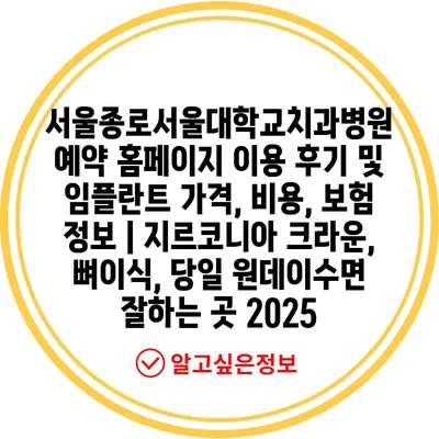 서울종로서울대학교치과병원 예약 홈페이지 이용 후기 및 임플란트 가격, 비용, 보험 정보 | 지르코니아 크라운, 뼈이식, 당일 원데이수면 잘하는 곳 2025 에 대해 자주 묻는 질문 TOP 5