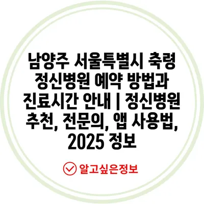 남양주 서울특별시 축령 정신병원 예약 방법과 진료시간 공지 | 정신병원 추천, 전연락, 앱 사용법, 2025 정보 에 대해 자주 묻는 질문 TOP 5