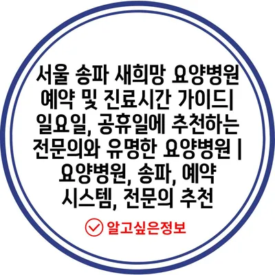 서울 송파 새희망 요양병원 예약 및 진료시간 설명서| 일요일, 공휴일에 추천하는 전연락와 유명한 요양병원 | 요양병원, 송파, 예약 시스템, 전연락 추천 에 대해 자주 묻는 질문 TOP 5
