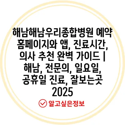 해남해남우리종합병원 예약 홈페이지와 앱, 진료시간, 의사 추천 완벽 설명서 | 해남, 전연락, 일요일, 공휴일 진료, 잘보는곳 2025에서 필요한 내용을 알려알려드리겠습니다.