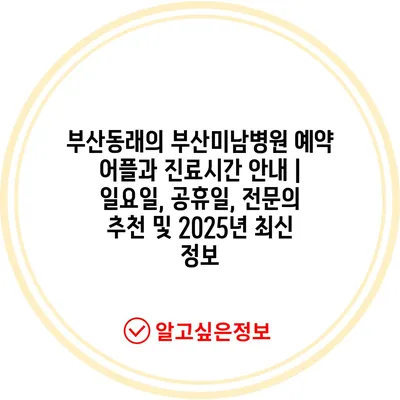 부산동래의 부산미남병원 예약 어플과 진료시간 공지 | 일요일, 공휴일, 전연락 추천 및 2025년 최신 정보 에 대해 자주 묻는 질문 TOP 5
