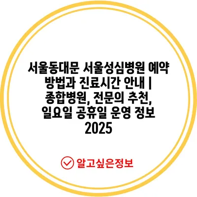 서울동대문 서울성심병원 예약 방법과 진료시간 공지 | 종합병원, 전연락 추천, 일요일 공휴일 운영 정보 2025 에 대해 자주 묻는 질문 TOP 5
