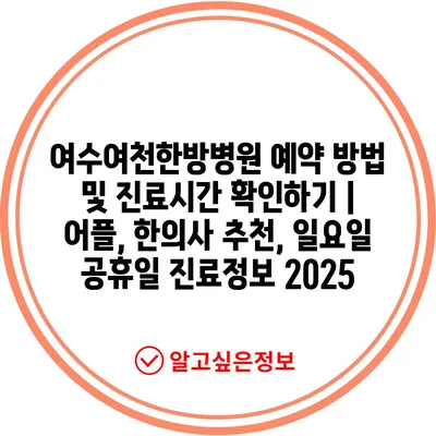여수여천한방병원 예약 방법 및 진료시간 확인하기 | 어플, 한의사 추천, 일요일 공휴일 진료정보 2025에 대해 알아보겠습니다.