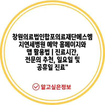 창원의료법인합포의료재단에스엠지연세병원 예약 홈페이지와 앱 활용법 | 진료시간, 전연락 추천, 일요일 및 공휴일 진료” 에 대해 자주 묻는 질문 TOP 5