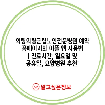 ✅ 의령군립노인전문병원 예약 방법을 지금 바로 알아보세요!