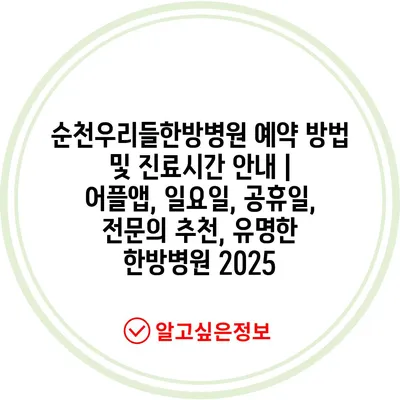 ✅ 순천우리들한방병원의 진료시간과 예약 방법을 자세히 알아보세요.
