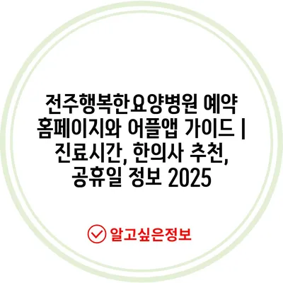 전주행복한요양병원 예약 홈페이지와 어플앱 설명서 | 진료시간, 한의사 추천, 공휴일 정보 2025에 대해 소개하겠습니다.